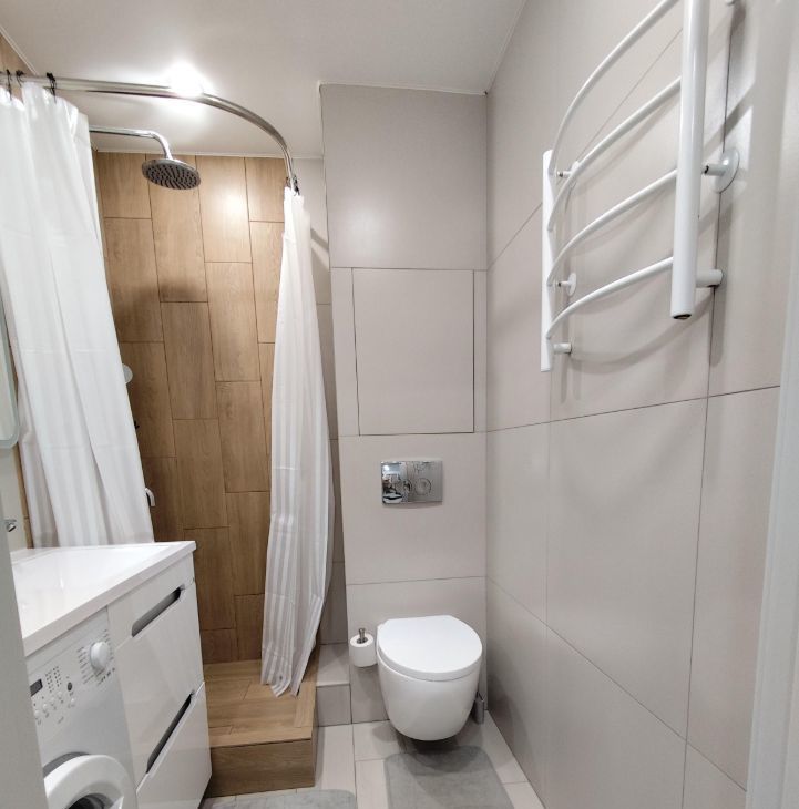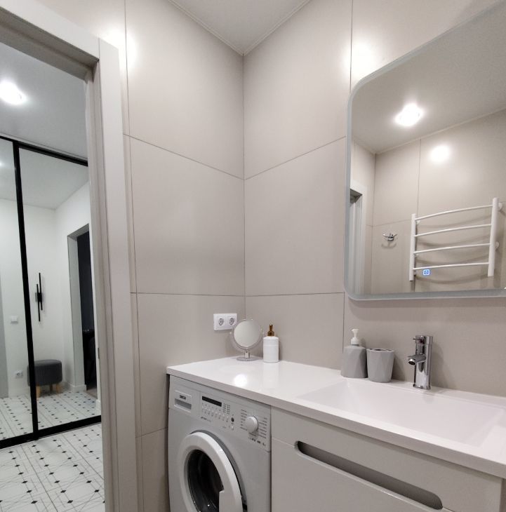 В квартире сделан качественный дизайнерский ремонт, использованы дорогие материалы. Вся бытовая техника и мебель новые.