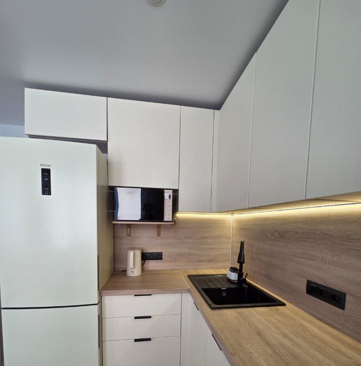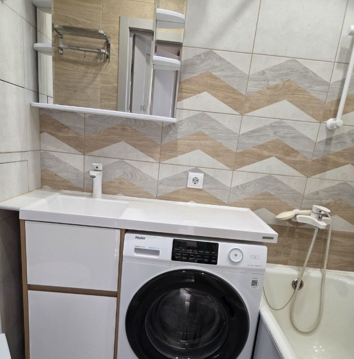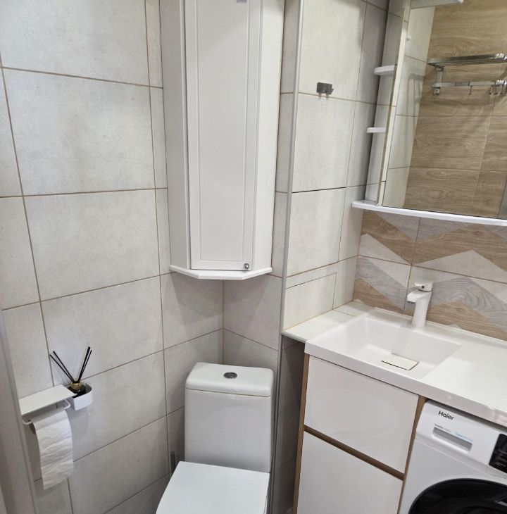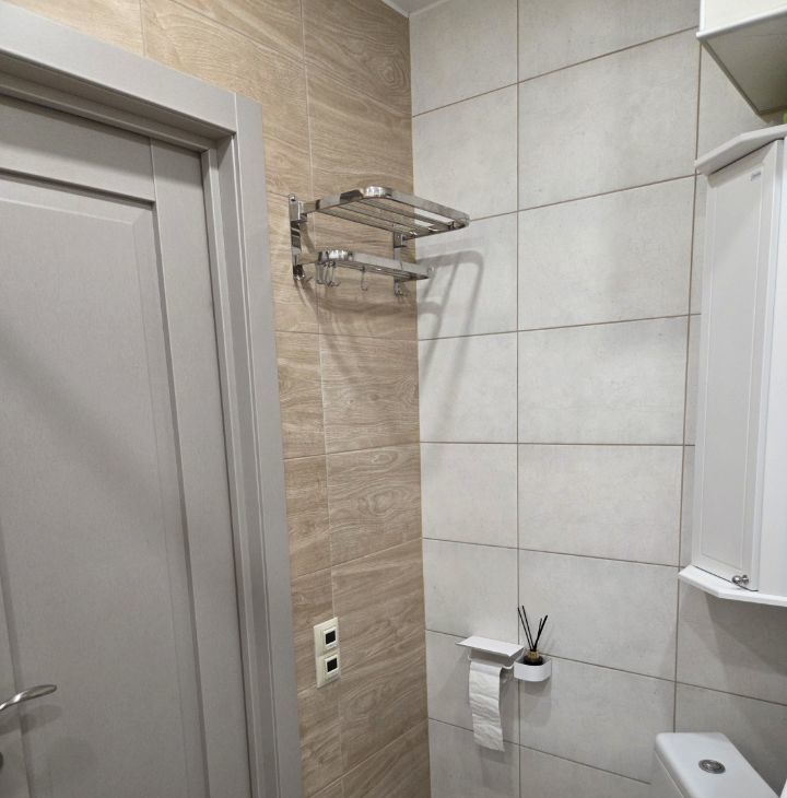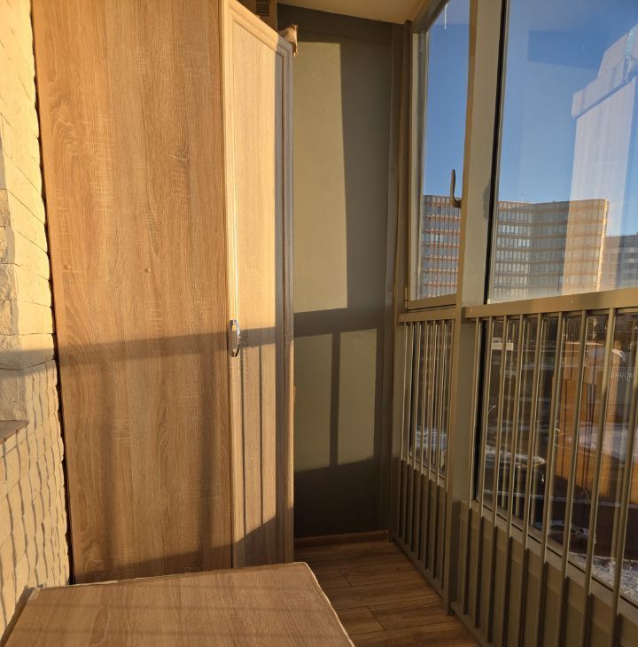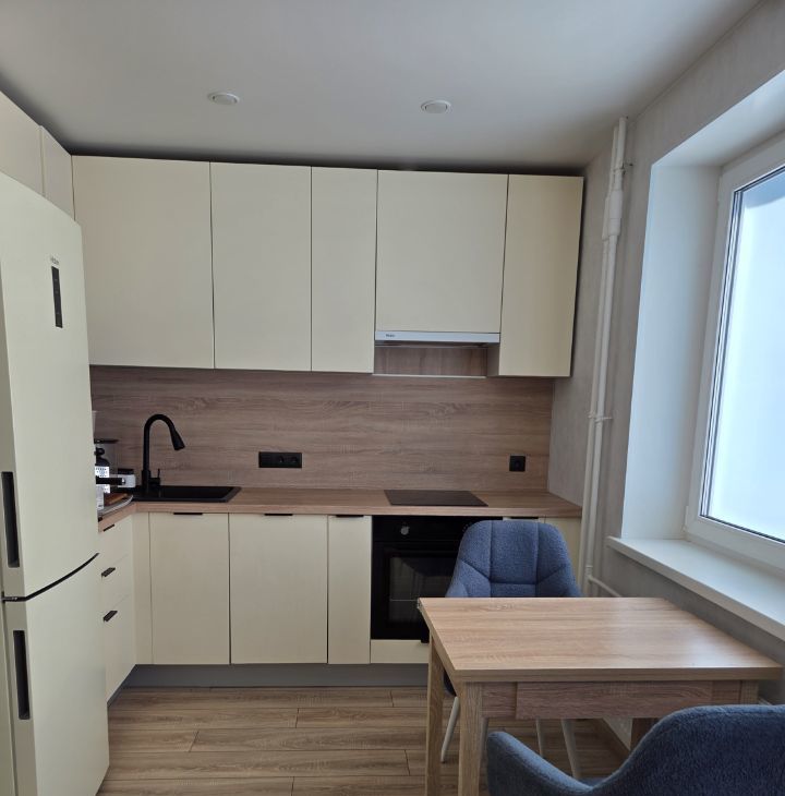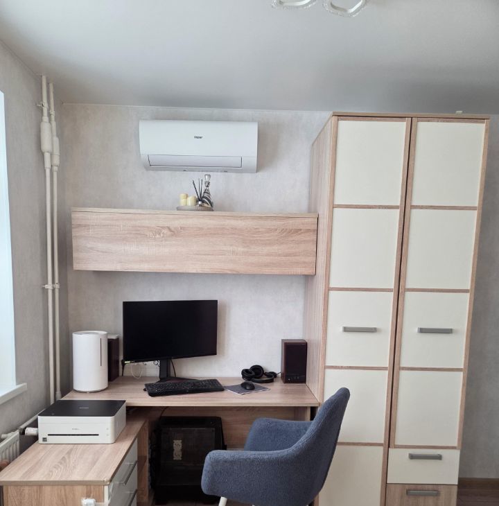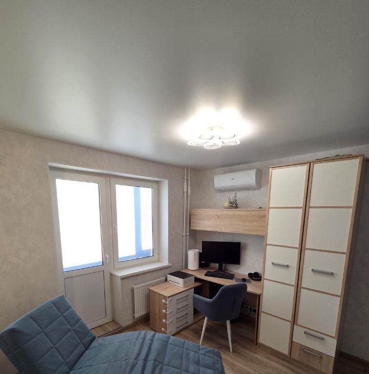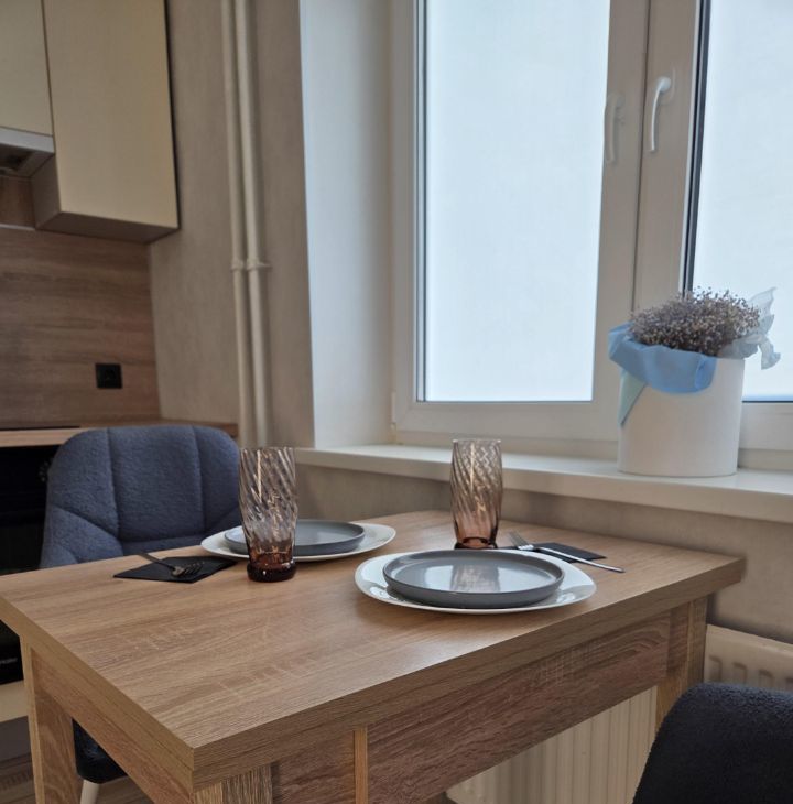 В квартире выполнен современный ремонт, есть все необходимое для проживания 1-2 человек. Полноценная кухонная зона, прекрасная рабочая зона, кровать, складное кресло, продуманные места хранения вещей, в санузле теплый пол, есть просторная остекленная лоджия - 6 м2.