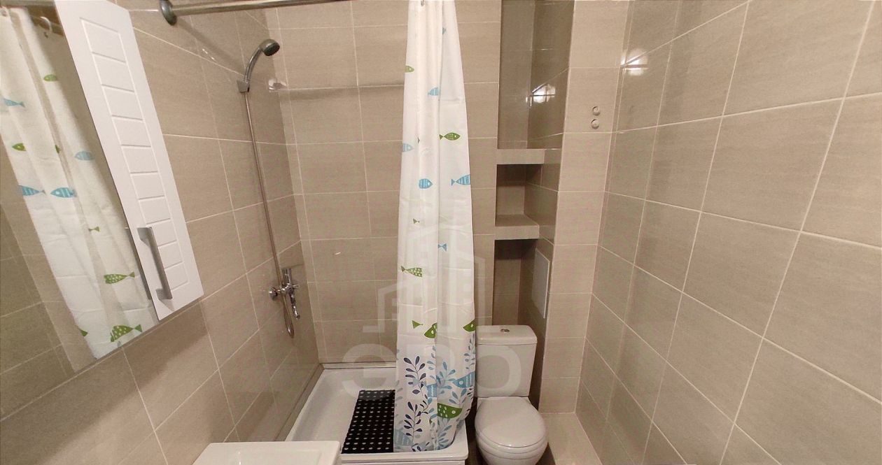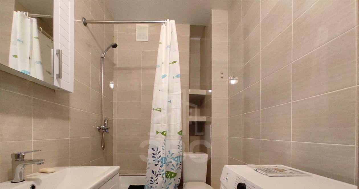 В квартире есть необходимая для проживания мебель и техника: большой удобный диван, кухонный гарнитур, электроплита с духовкой, стиральная машина, холодильник, стол, прихожая, рабочий стол и системы хранения.
