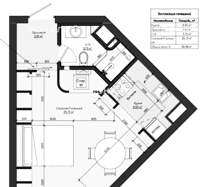 Студия Санкт-Петербург Ждановская ул., 43к2 (36.7 м²)