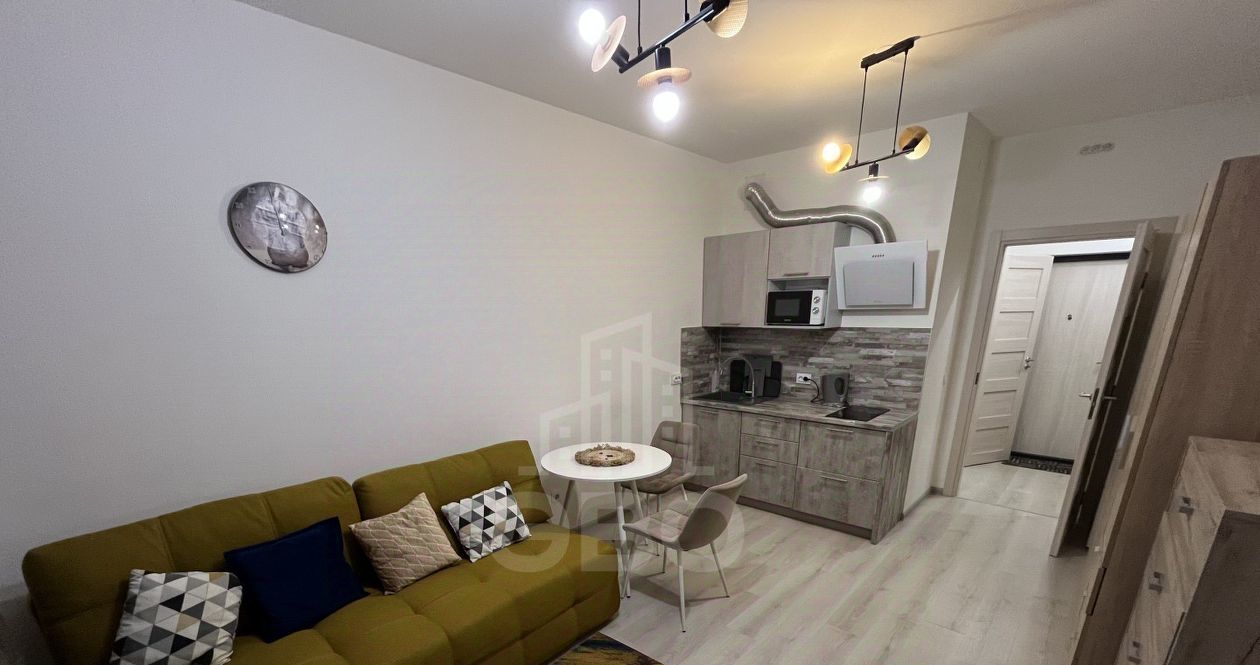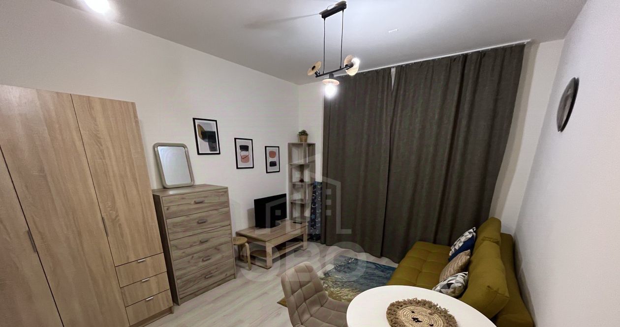 Студия полностью меблирована и готова к проживанию. В квартире есть вся необходимая техника и мебель для комфортной жизни: