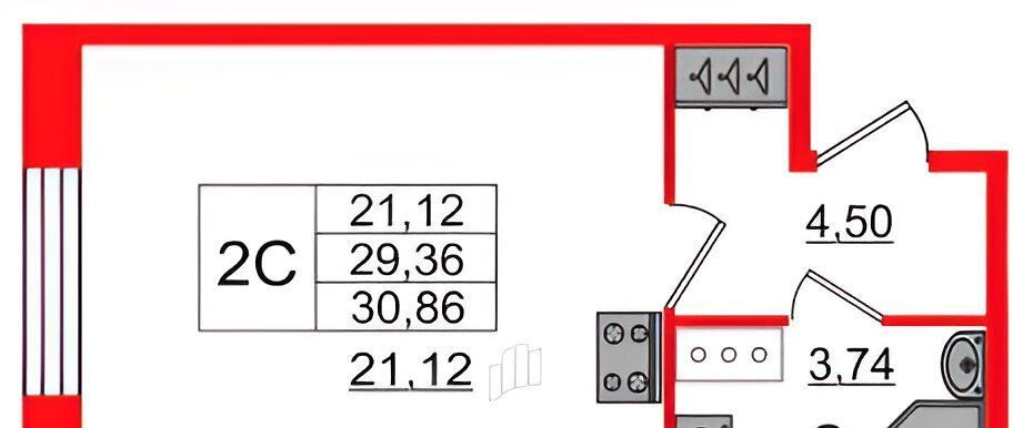 Студия Санкт-Петербург Железнодорожный просп., 14к1 (29.0 м²)