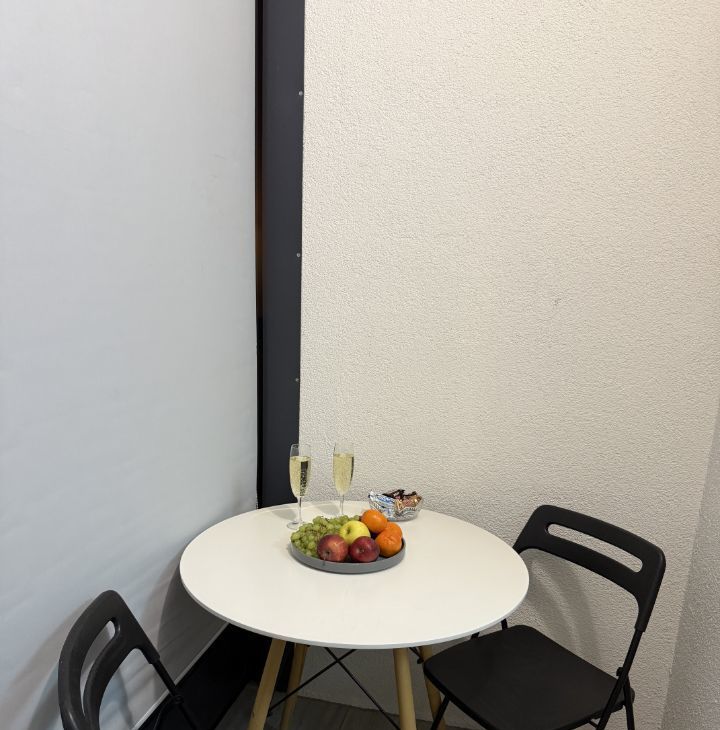 Студия оборудована всем необходимым( духовой шкаф, варочная панель,стиральная машинка ,телевизор с приставкой , посуда, постельное белье). Красивый застекленный балкон