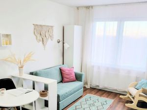 В наличии: закрытый двор, новая быт. техника, мебель (включая двуспальный раскладной диван), балкон и индустриальный пейзаж из окна