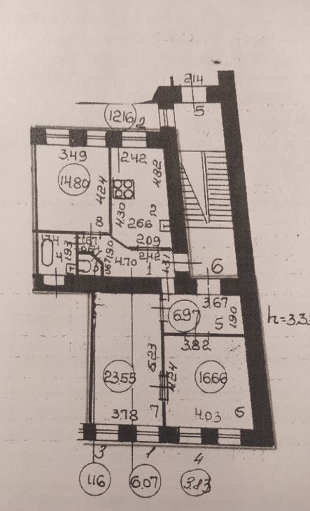 Дом кирпичный, стены толстые. Перекрытия смешанные.