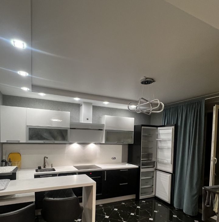 В квартире дизайнерский ремонт. Просторная кухня от Первой мебельной оснащена вместительным гарнитуром, современной бытовой техникой, включая большой холодильник, духовой шкаф, варочную панель, посудомоечная машина, мощная вытяжка, СВЧ и эл/чайник. Столешница и обеденная стойка, выполнены из американского искусственного камня.