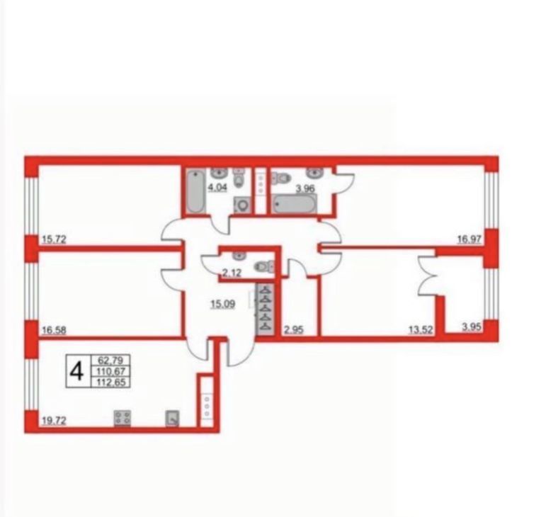 Свободной планировки кв. Санкт-Петербург Петровский просп., 26к2 (111.0 м²)