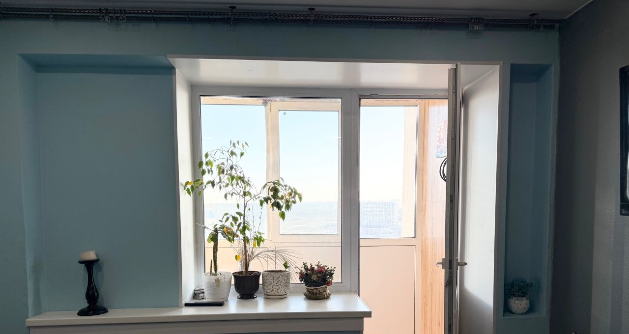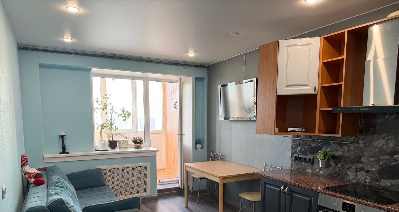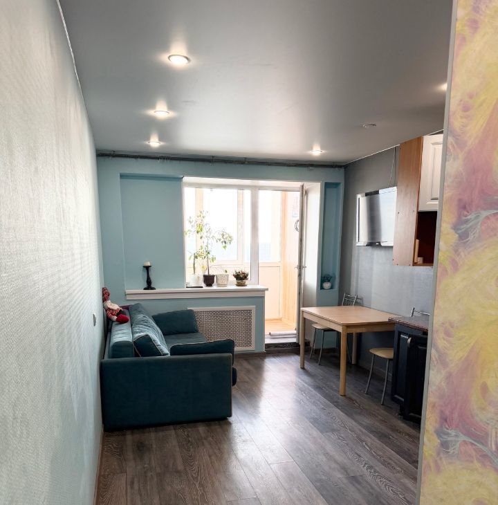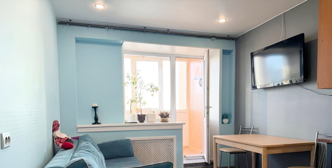 - кухня-гocтиная 18.4 м2 + застеклённая лоджия 3 м2
