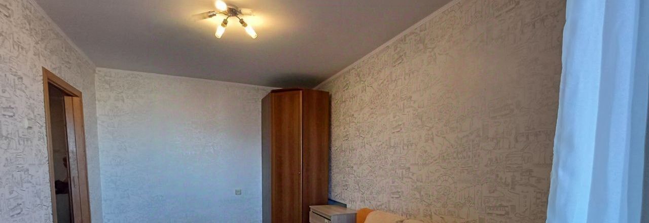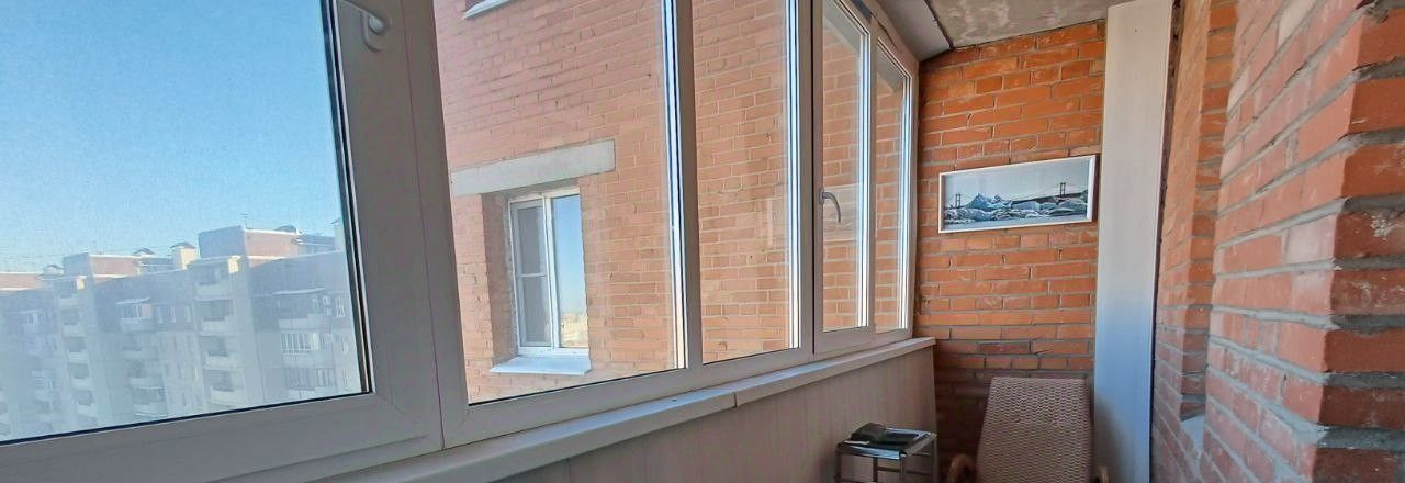 Квартира двусторонняя, окна - стеклопакеты, на одну сторону - большая застекленная лоджия, на другую - балкон. Мебель: 1 комната - шкаф, диван, комод; 2 комната - кровать, комод, кухня - мебельный гарнитур, плита, холодильник, стол; прихожая - шкаф. Есть небольшая гардеробная комната, стиральная машина. Панорамный вид из окон.